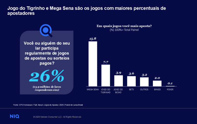 Apostas entram no orçamento das famílias e já impactam consumo no Brasil, aponta NielsenIQ